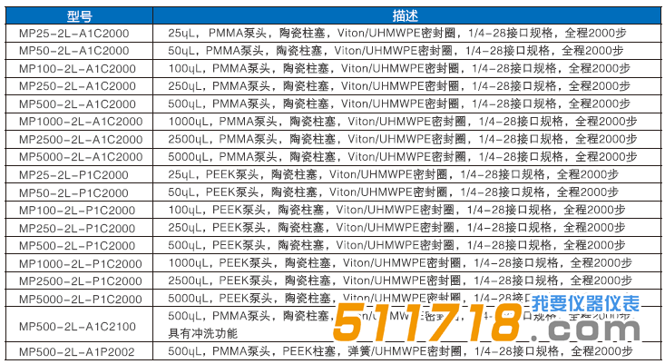 提供多種泵頭材質(zhì)(PMMA/PEEK/PEI及其它)、多種柱塞材質(zhì)(陶瓷/PEEK及其它),多種密封圈材質(zhì)(UHMWPE/Viton/FFKM/302ss及其它)。針對(duì)不同屬性的溶液選擇適合的材質(zhì),可延長泵的使用壽命,降低設(shè)備維護(hù)成本。